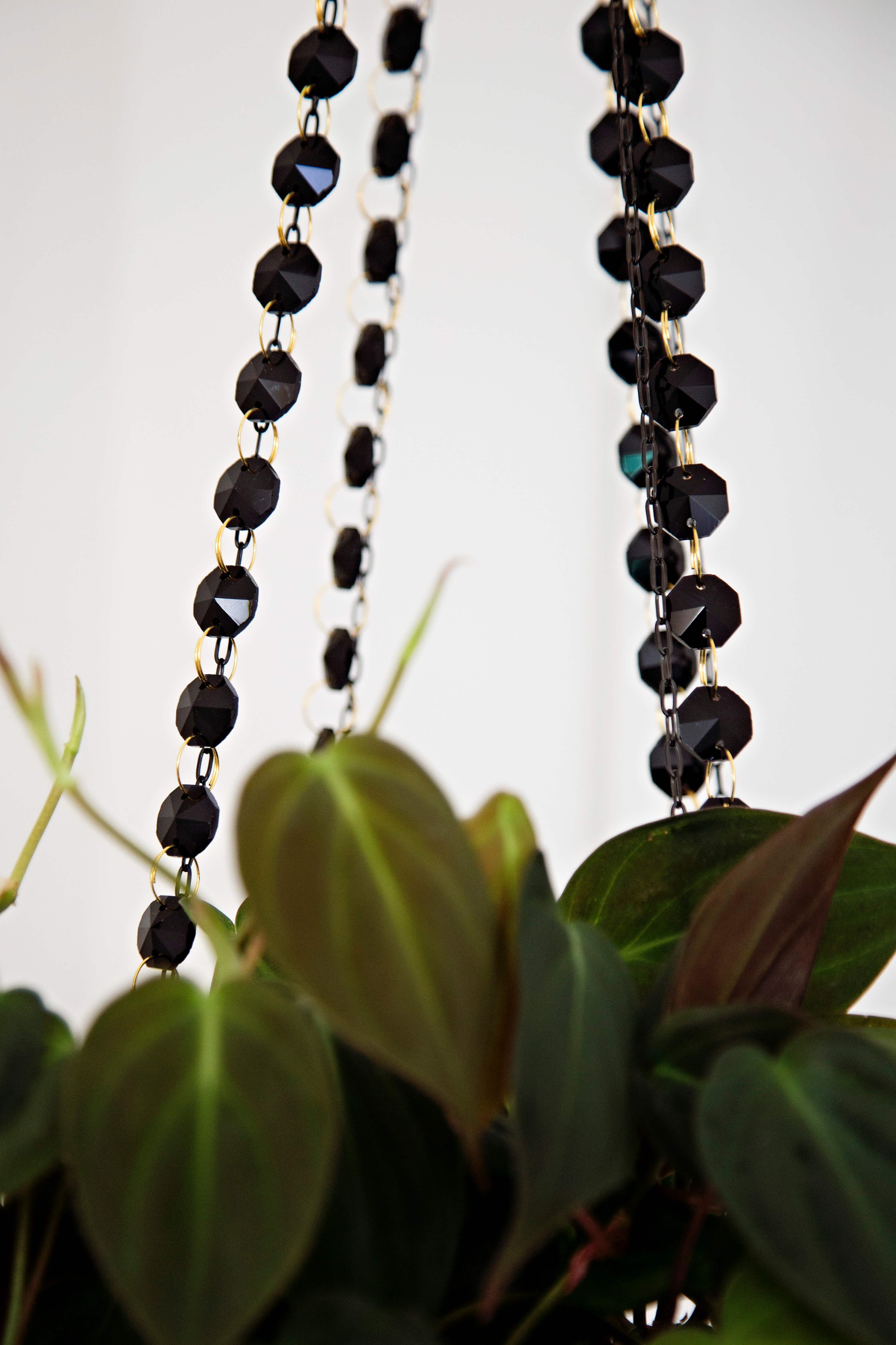 Black Beauty Suncatcher Plant Hanger – Black Glass Beads & Gold Details