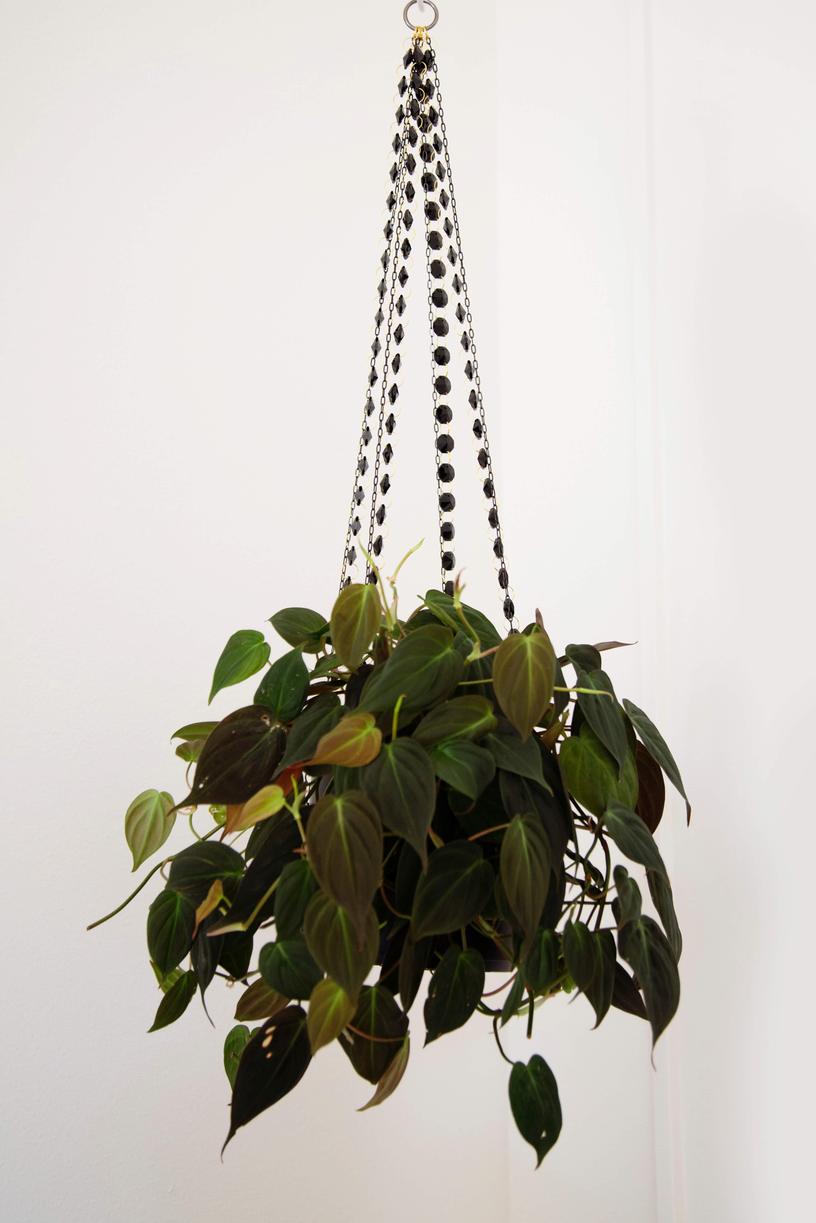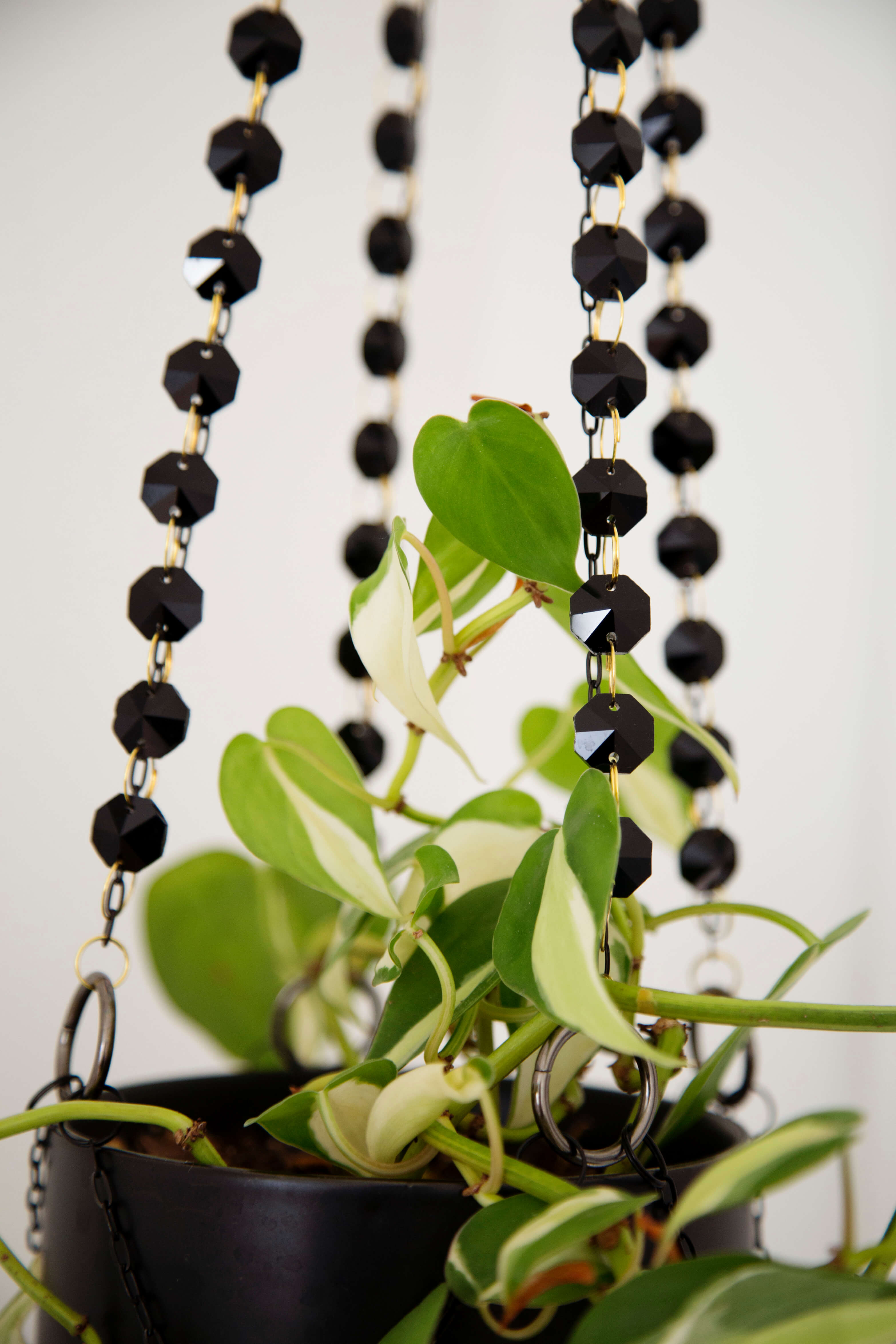 🖤 Bring bold elegance into your space with our handcrafted Black Plant Hanger, designed to make your greenery truly shine. Featuring black glass beads, a sleek black chain, and subtle hints of gold, this piece offers a modern, moody twist while bringing nature in.